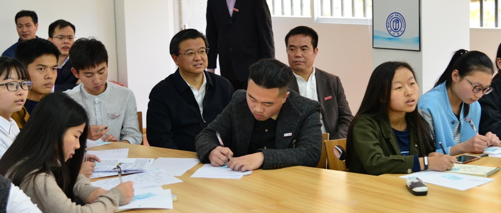 在大学生创业孵化基地,倪岳峰现场观摩了正在进行的创业沙龙。主讲创业沙龙的旅游系创业导师郑秋事后激动地说:“看见倪书记步入课堂,在学生中坐了下来开始听课,我既紧张,又深感荣幸。这是我从事创新创业教育11年来最特殊的一堂课。”
