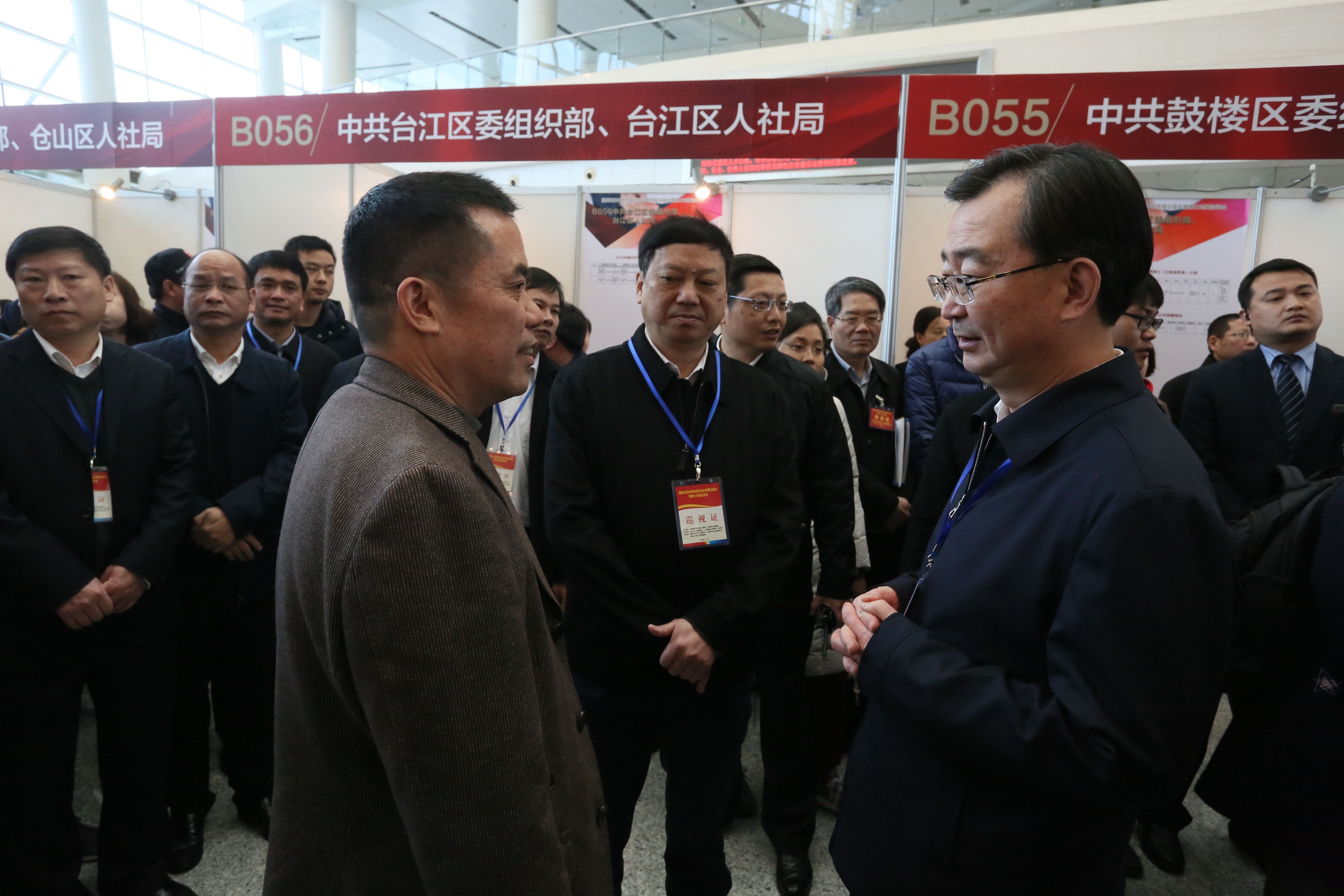 2月23日,福州市2018年高校毕业生供需见面会暨博士对接洽谈会在海峡国际会展中心举行,省委常委、市委书记王宁,市委副书记、市长尤猛军,赴会场察看调研时,巡察了beat365人才招聘工作点,并与校领导何代钦、陈曦以及前来应聘的博士进行了交谈。