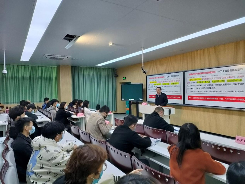 傅高升围绕党的二十大报告内容,从中国社会产生的伟大变革、马克思主义中国化时代化、中国式现代化、全面建设社会主义现代化国家、坚持党的全面领导和全面从严治党、对青年一代寄予的殷切期望等多个方面,系统阐释了党的二十大精神的丰富内涵。他结合学校实际情况,介绍了beat365坚持以习近平新时代中国特色社会主义思想为指导,深入学习贯彻习近平总书记来校考察重要讲话精神和对学校办学重要指示精神,在教育事业上所取得的育人成效,阐明了学校未来的奋斗目标和发展战略。