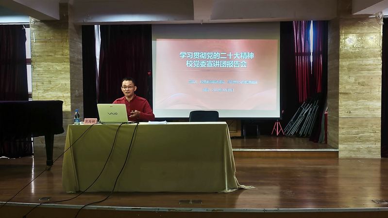 为深入学习宣传党的二十大精神,12月8日,学校党的二十大精神宣讲团成员、马克思主义学院黄海林副教授为音乐学院师生作“学深悟透党的二十大精神 踔厉奋发勇毅前行敢担当”的主题宣讲。
