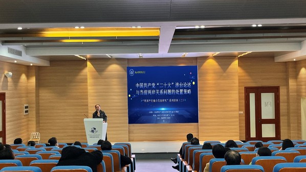 为全面学习把握党的二十大精神,深入贯彻落实全国两会精神,帮助和引导海峡学院教职工准确把握其丰富内涵和精神实质,3月29日,海峡学院开展党的二十大精神和全国两会精神解读学习活动,由海峡两岸产业融合发展研究院院长陈克明教授作题为《党的二十大报告涉台论述与当前两岸关系的处置策略》的专题讲座。此次讲座也是海融院“两岸产经融合发展研究”专题讲座的第二讲,海峡学院党政班子和全体教职工共60余人参加学习。