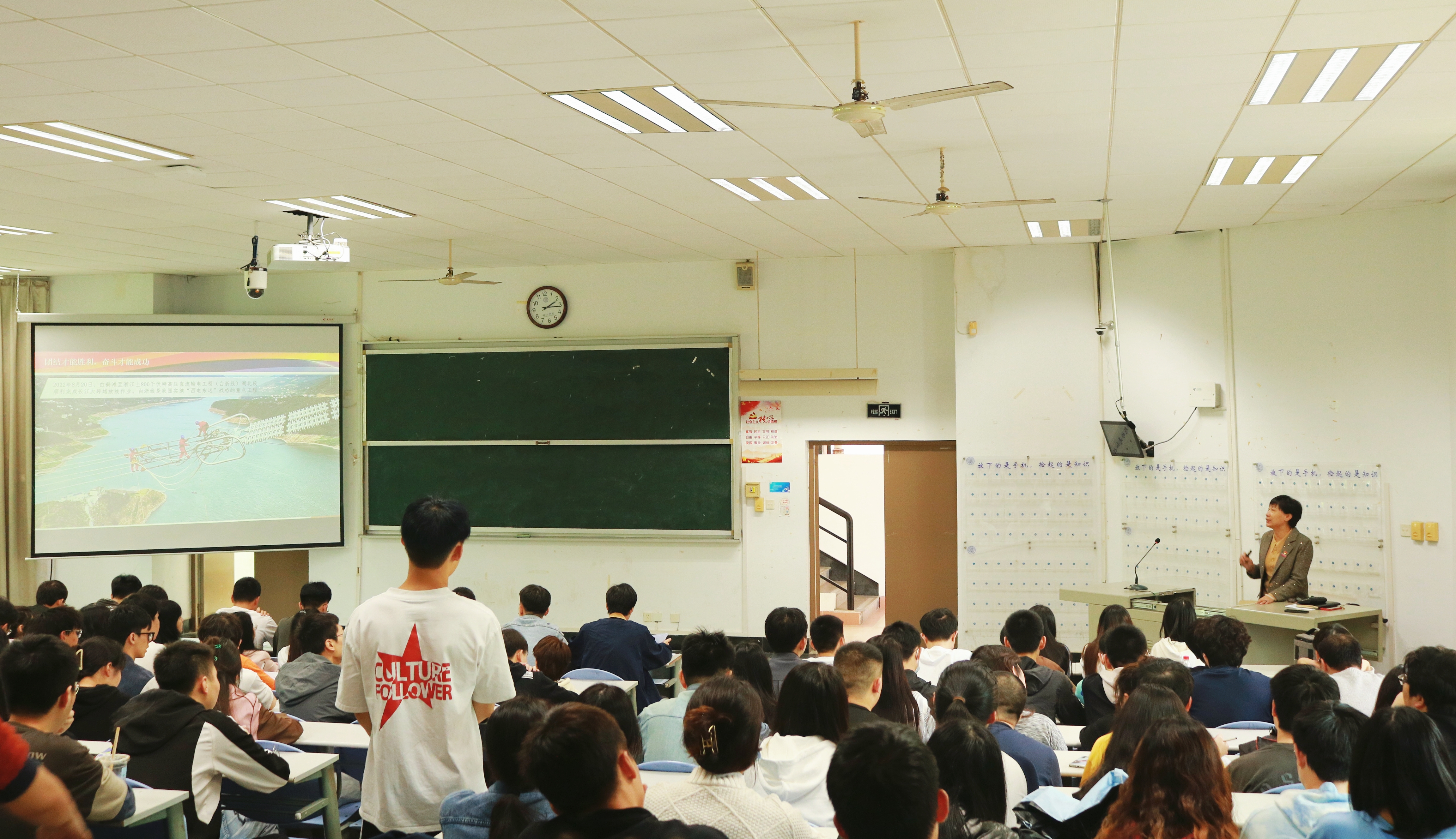 课上,祝榕以党的二十大精神为主线,从永载史册的伟大变革、引领复兴的宏伟蓝图、笃行不怠的战略定力三个方面,为同学们详细讲解了新时代10年的伟大变革及其里程碑意义,党的二十大主题的深刻内涵,党和国家事业所处的新方位、谋划的新目标、制定的新部署以及前进道路上应对风险挑战的战略定力。