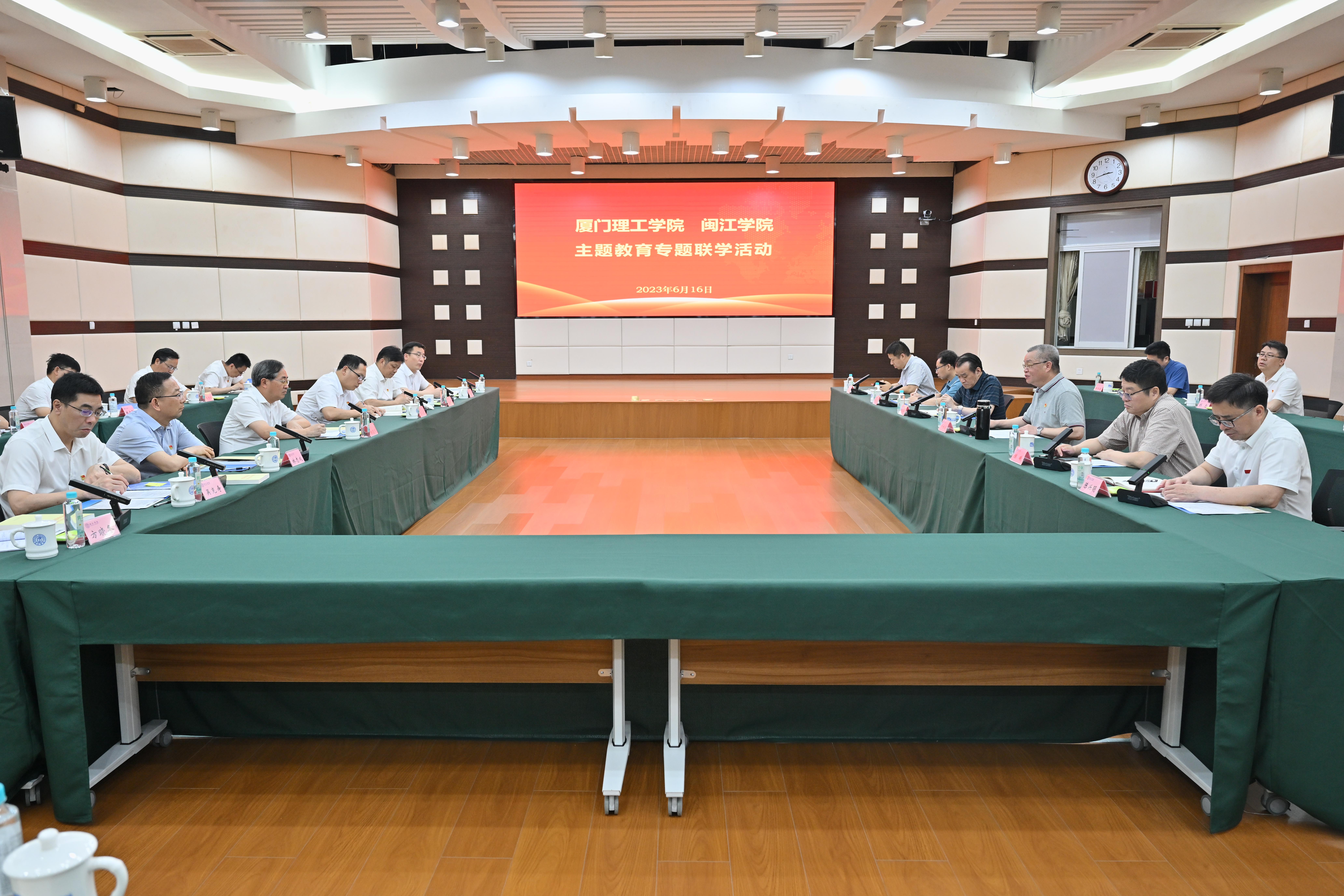 6月16日,厦门理工学院党委书记林进川带队来校开展主题教育读书班联学活动。联学活动由校党委书记叶世满主持。省委第一巡回指导组成员王永继到校指导,两校领导班子成员、主题教育办成员参加联学活动。