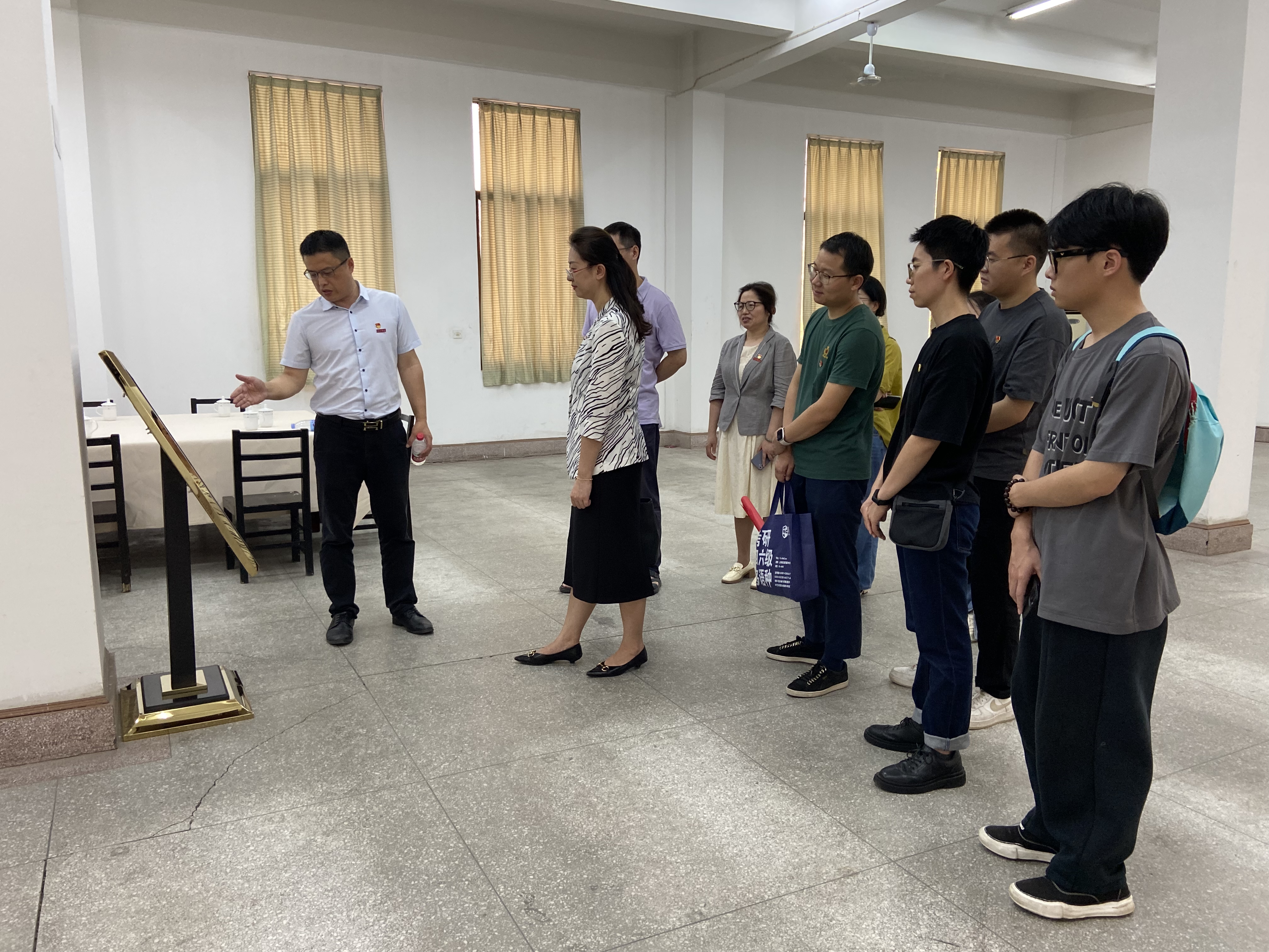 继续教育学院党总支书记、院长陈剑峰向师生党员们介绍了工业路校区特色档案馆、毓英楼五层多功能厅、闽大现场办公会及“教工宿舍”年夜饭复原场景等。一张张历史老照片,让师生党员们深深感受到了习近平总书记“心系闽大、热爱闽大”的教育情怀。