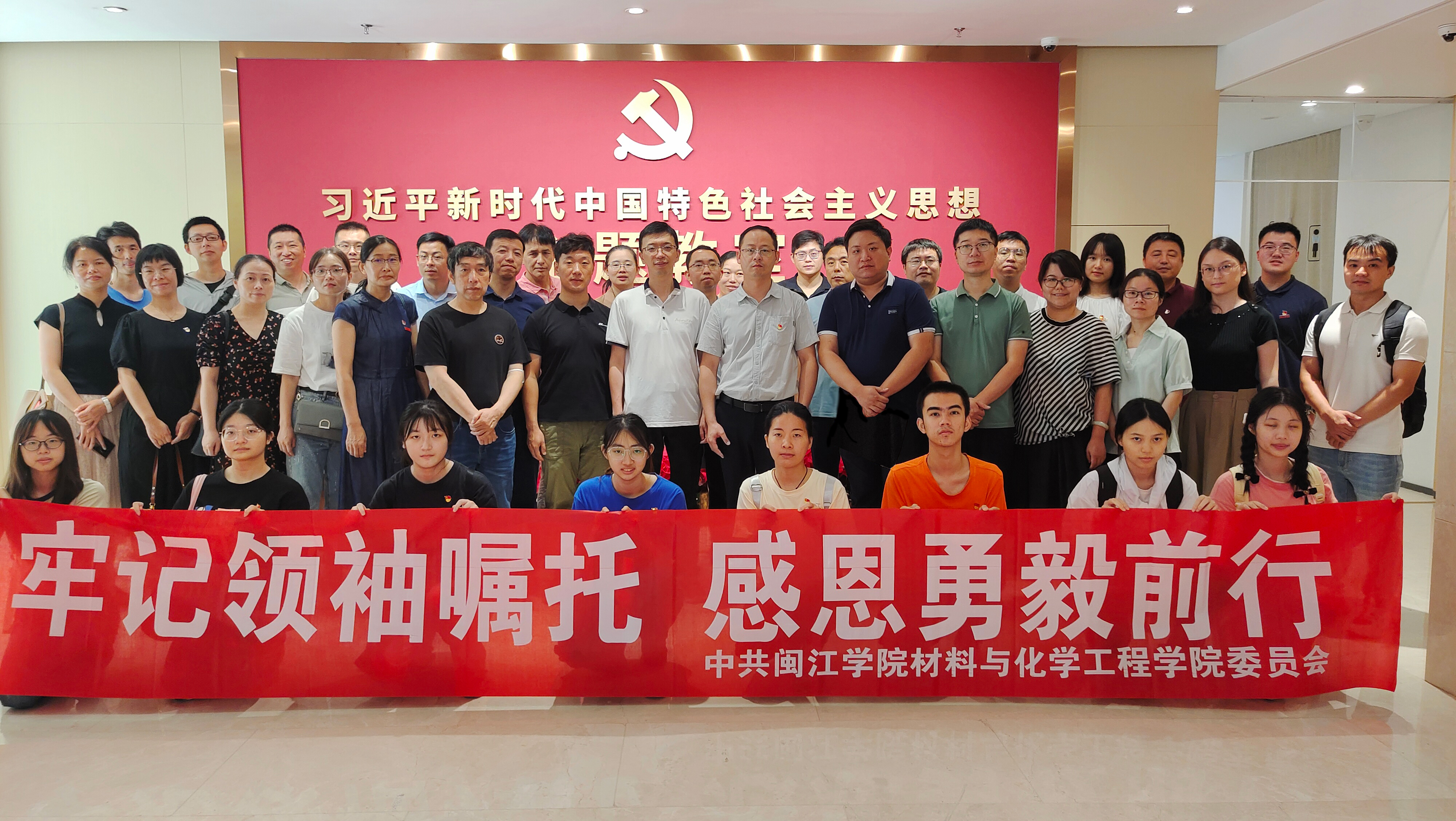 7月6日,材化学院40余名师生党员在院党委副书记蔡炎辉和副院长陈毅挺的带领下共同赴省委党校、行政学院“习近平新时代中国特色社会主义思想主题教室”开展主题教育。