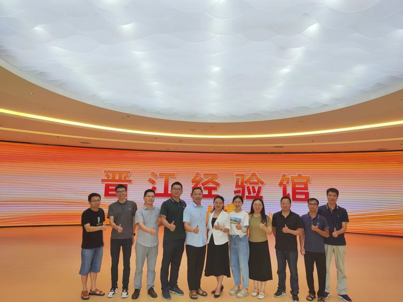 深学增信,汲取力量。在福建省习近平新时代中国特色社会主义思想实践示范基地——晋江经验馆,调研团成员参观了 “晋江经验”主题展,深入学习习近平总书记总结提出“晋江经验”的实践探索和理论思考,深刻领悟以“六个始终坚持”和“正确处理好五大关系”为主要内涵的“晋江经验”。展馆通过影视回顾、珍贵图片、实物展示和情景再现等手法,辅以数码互动、多媒体查询系统、数字沙盘等现代技术,全面展示了晋江市践行发展“晋江经验”所取得的辉煌成就,让调研团成员深刻感受到了晋江人民“敢为天下先、爱拼才会赢”的干事创业精神,也加深和增进了大家对习近平新时代中国特色社会主义思想的政治认同、思想认同、理论认同、情感认同。调研团的党员教师们面对党旗,重温入党誓词,牢记初心使命,从晋江经验中汲取“敢拼、爱拼、善拼”的奋进力量,齐力投身一流应用型大学建设。