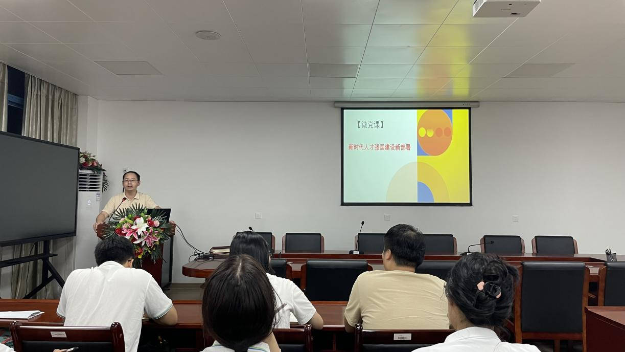 9月4日,材化学院党委副书记蔡炎辉为学生党员讲授题为《新时代人才强国建设新部署》微党课,学院全体辅导员、学生党员以及团学学生代表参听。