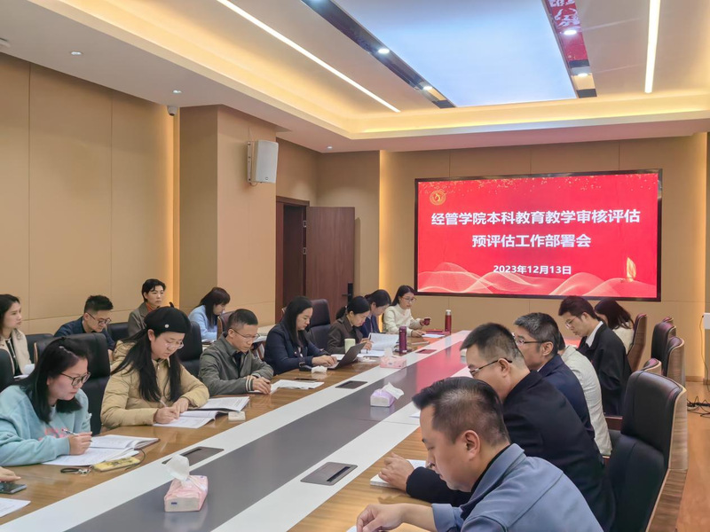 12月13日,经管学院召开迎接本科教育教学审核评估预评估(诊断评估)工作部署会,学院全体院领导、办公室负责人、实验中心副主任、团委书记、系主任、专业负责人、教研室主任、教师代表、教学秘书等参加会议。会议由学院院长杨广青主持。