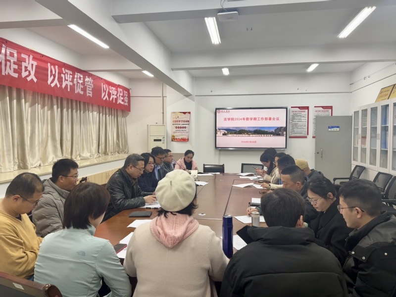 2月28日,法学院召开新学期工作部署会议。法学院党政负责人、系主任、实验实训中心主任、教研室主任、科研秘书、全体行政参加。会议由院党委书记戴少娟主持。