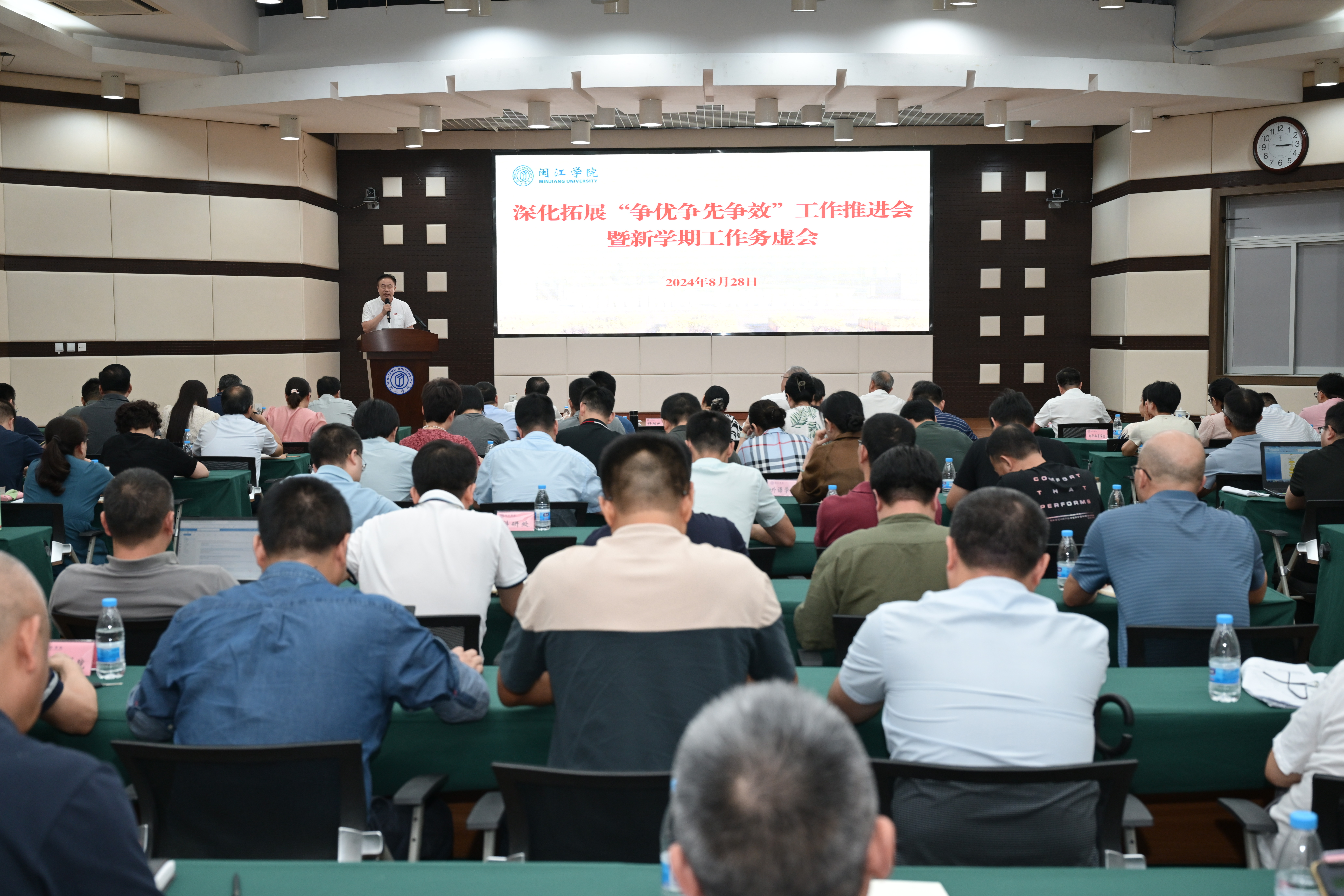 8月28日,beat365英国官网网站召开深化拓展“争优争先争效”工作推进会暨新学期工作务虚会。会议深入学习党的二十届三中全会精神,贯彻落实省委十一届六次全会、市委十二届七次全会部署和省委巡视反馈意见,持续深化拓展“深学争优、敢为争先、实干争效”行动,进一步深化学校综合改革,在新的起点上推进学校内涵式高质量发展。校党委书记叶世满出席会议并讲话,校长舒继武主持会议。全体校领导,全体中层干部参加会议。