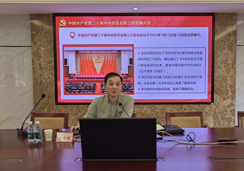 陈忠群以全会通过的《中共中央关于进一步全面深化改革、推进中国式现代化的决定》和习近平总书记在党的二十届三中全会上的重要讲话精神为重点,从“深刻把握全会主题”“深入学习领会重要讲话精神”“全面准确理解《决定》重大举措”和“全力以赴抓好全会精神贯彻落实”四个方面对全会精神进行了全面阐释和解读。他强调,深入学习领会党的二十届三中全会精神,始终把改革精神、改革思维、改革方法贯穿各项工作全过程,扎实做好进一步全面深化改革各项工作,激励和引导全校广大党员干部发扬改革精神、勇于担当作为,推动全面深化改革不断取得新突破。