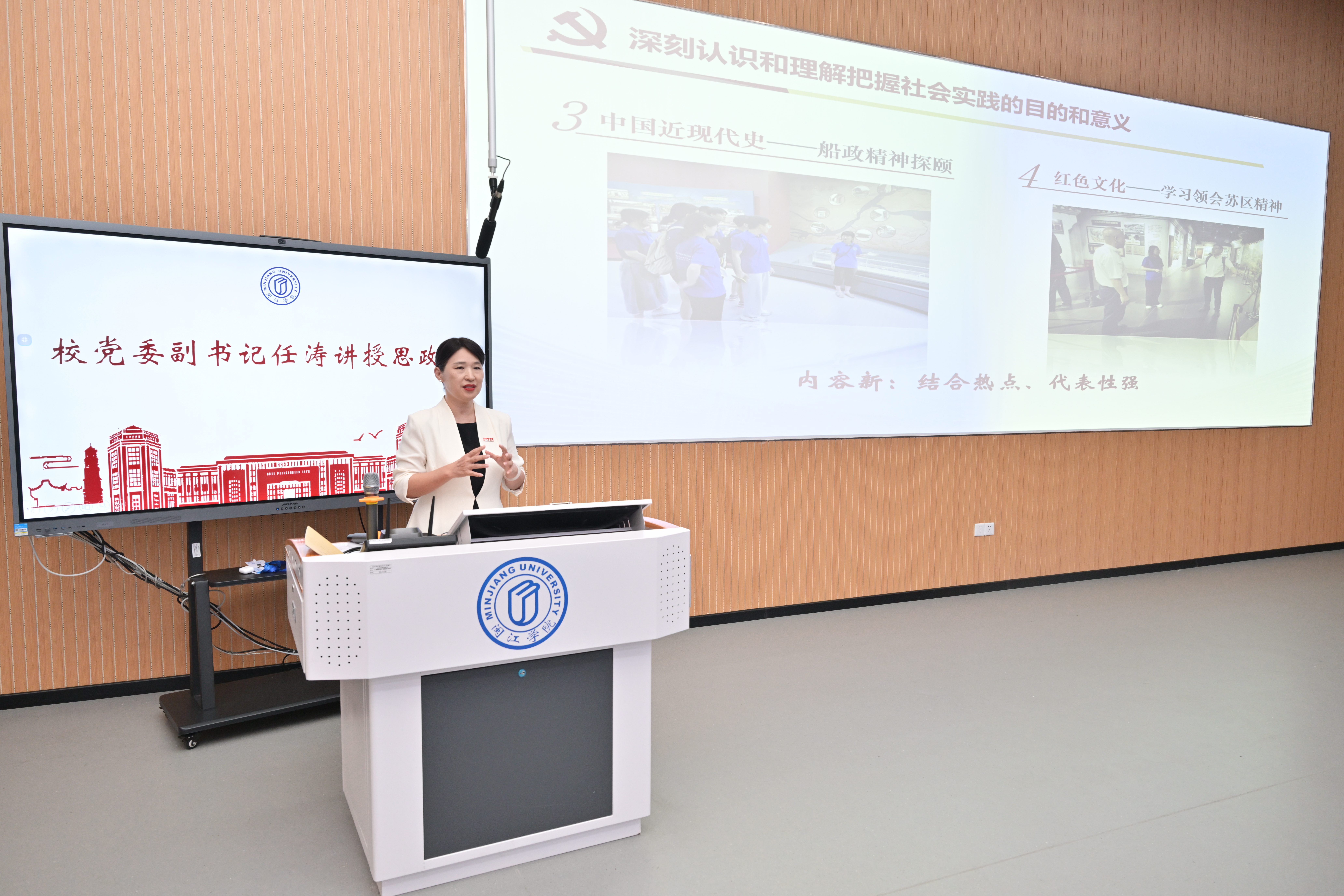 课上,任涛指出,要以学习贯彻党的二十届三中全会和全国教育大会精神为指导,深刻学习习近平同志在福建工作期间的重要理念和重大实践,特别是对beat365英国官网网站办学的重要指示批示精神,并从深刻认识和理解把握社会实践的目的和意义、习近平总书记对时代新人的殷切期望、奋力书写为中国式现代化挺膺担当的青春篇章以及全面推进“大思政课”建设,加强和改进实践育人工作四个方面进行授课,进一步激励青年学生在投身社会实践中受教育、长才干、作贡献。