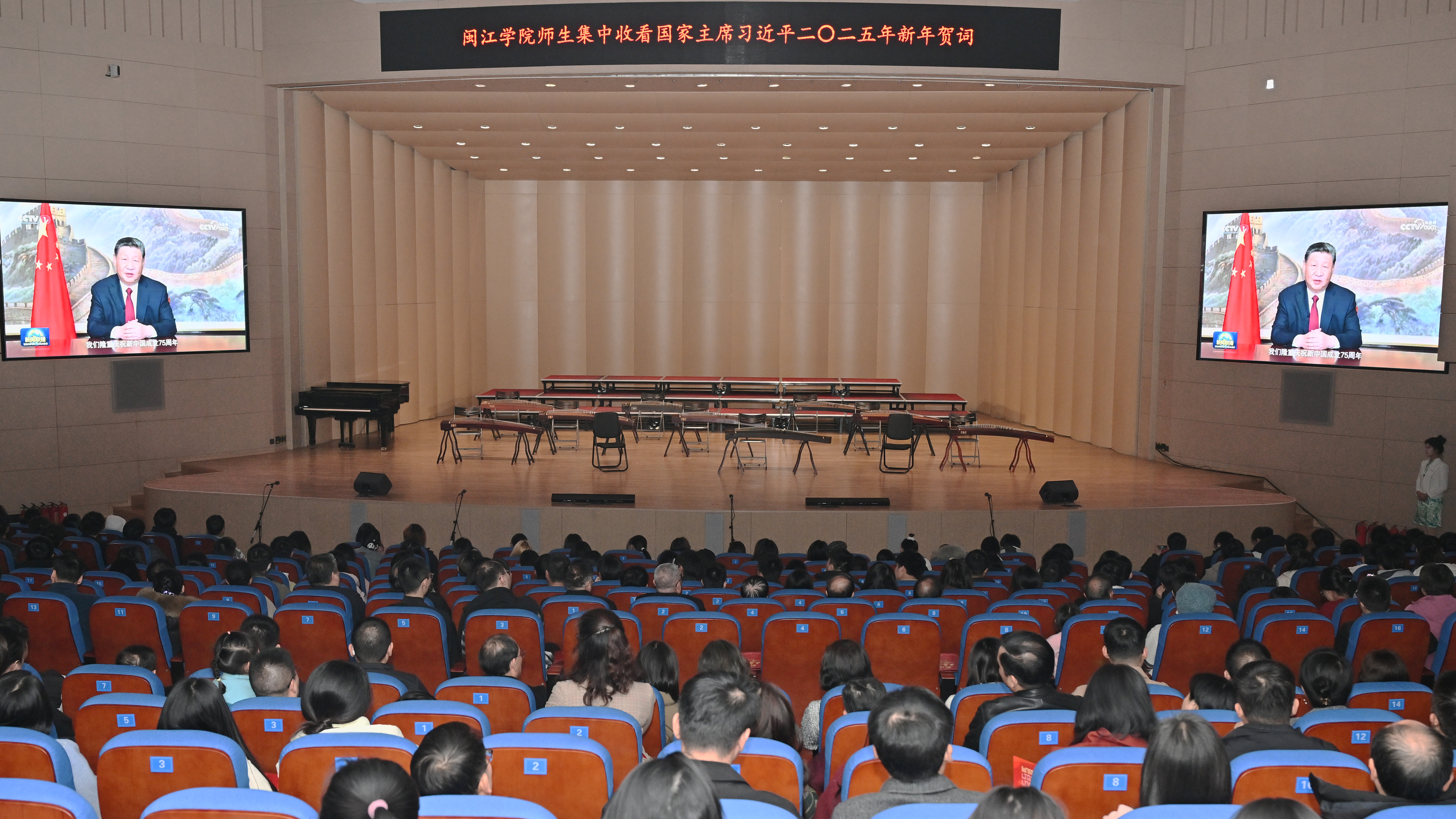 19时,现场师生和来宾共同聆听了国家主席习近平发表的二〇二五年新年贺词,与全国人民一起,回望过往的奋斗路,眺望前方的奋进路。