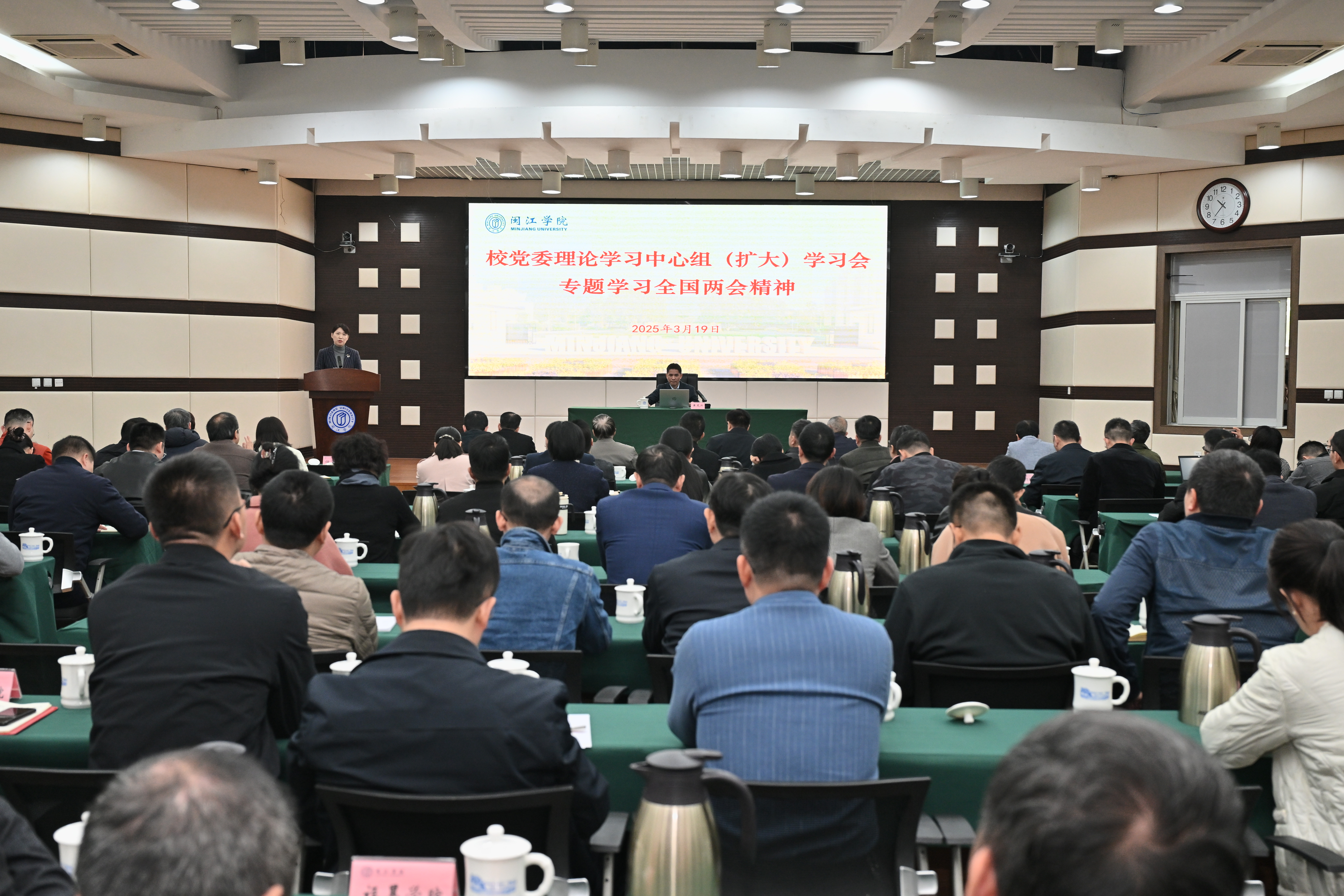 3月19日,beat365召开党委理论学习中心组(扩大)学习会,传达学习贯彻习近平总书记在全国两会期间的重要讲话精神和全国两会精神。会议邀请全国人大代表、福建社会科学院副院长黄茂兴作2025年全国两会专题辅导报告。学习会由校党委副书记任涛主持。
