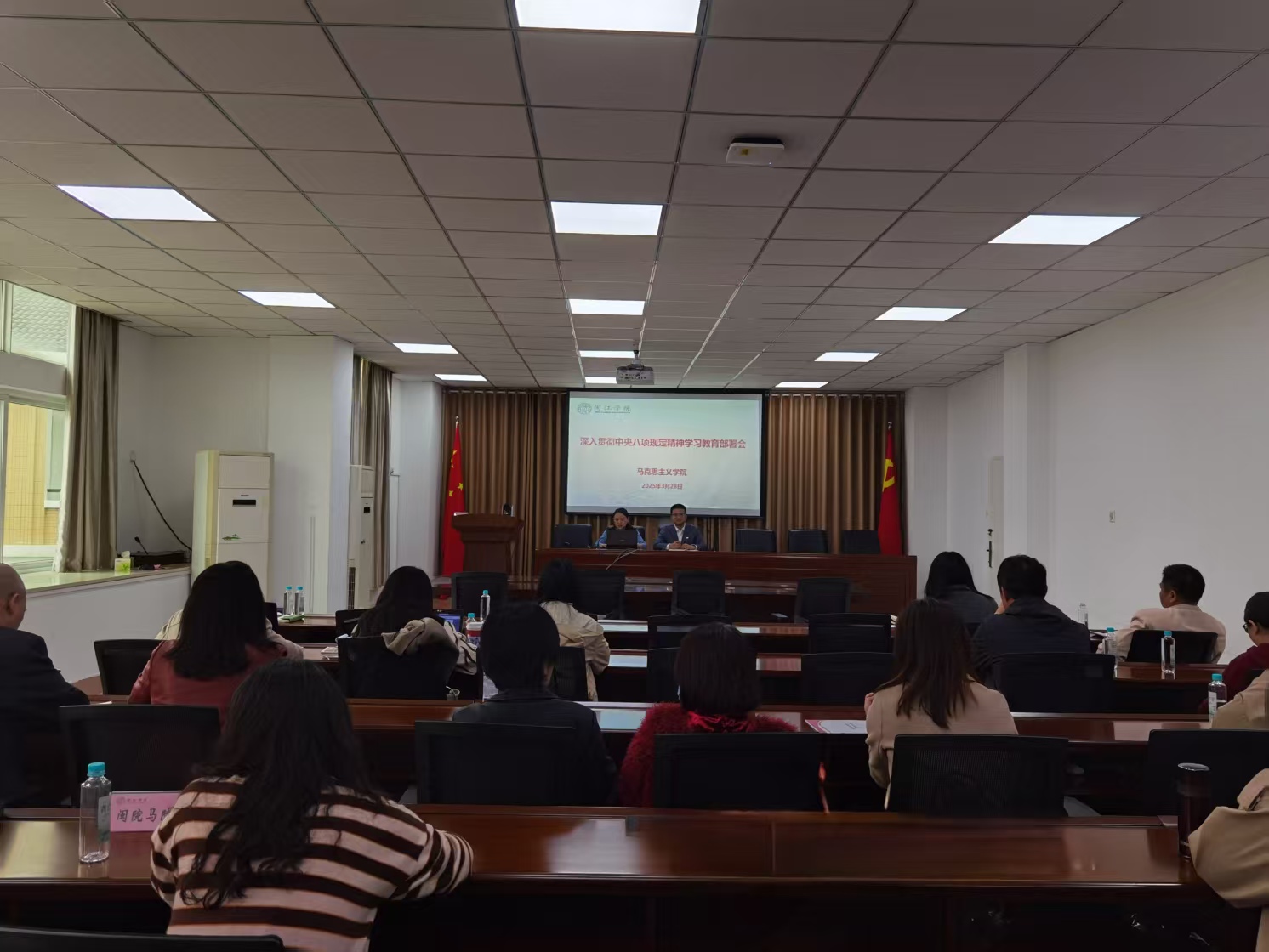 3月28日,马克思主义学院党总支召开深入贯彻中央八项规定精神学习教育部署会,学院党总支书记张颖主持会议,全体教工参加会议。