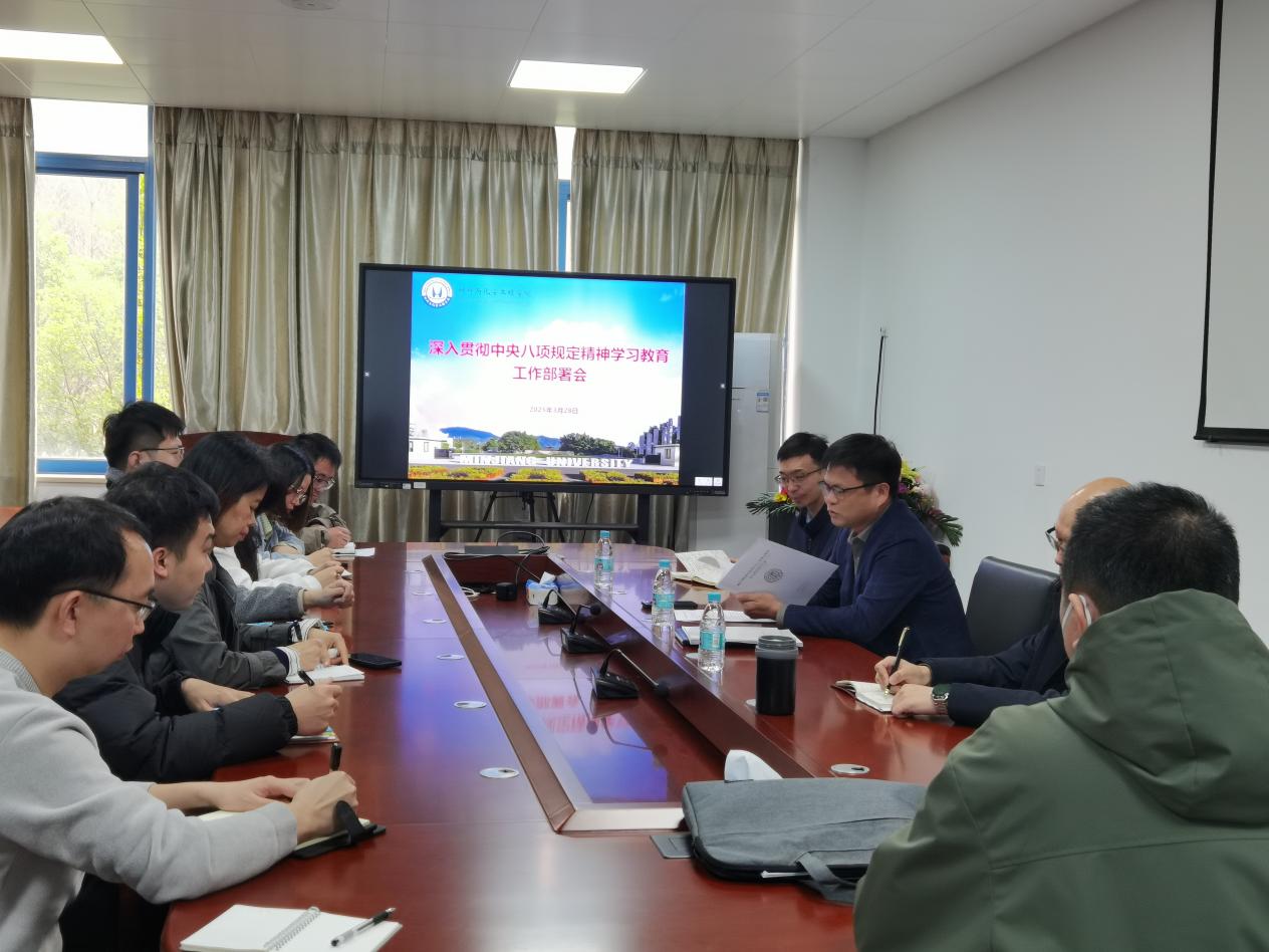 3月28日,材化学院党委召开深入贯彻中央八项规定精神学习教育部署会,院党委委员、党支部书记参加会议,会议由院党委书记陈世文主持。