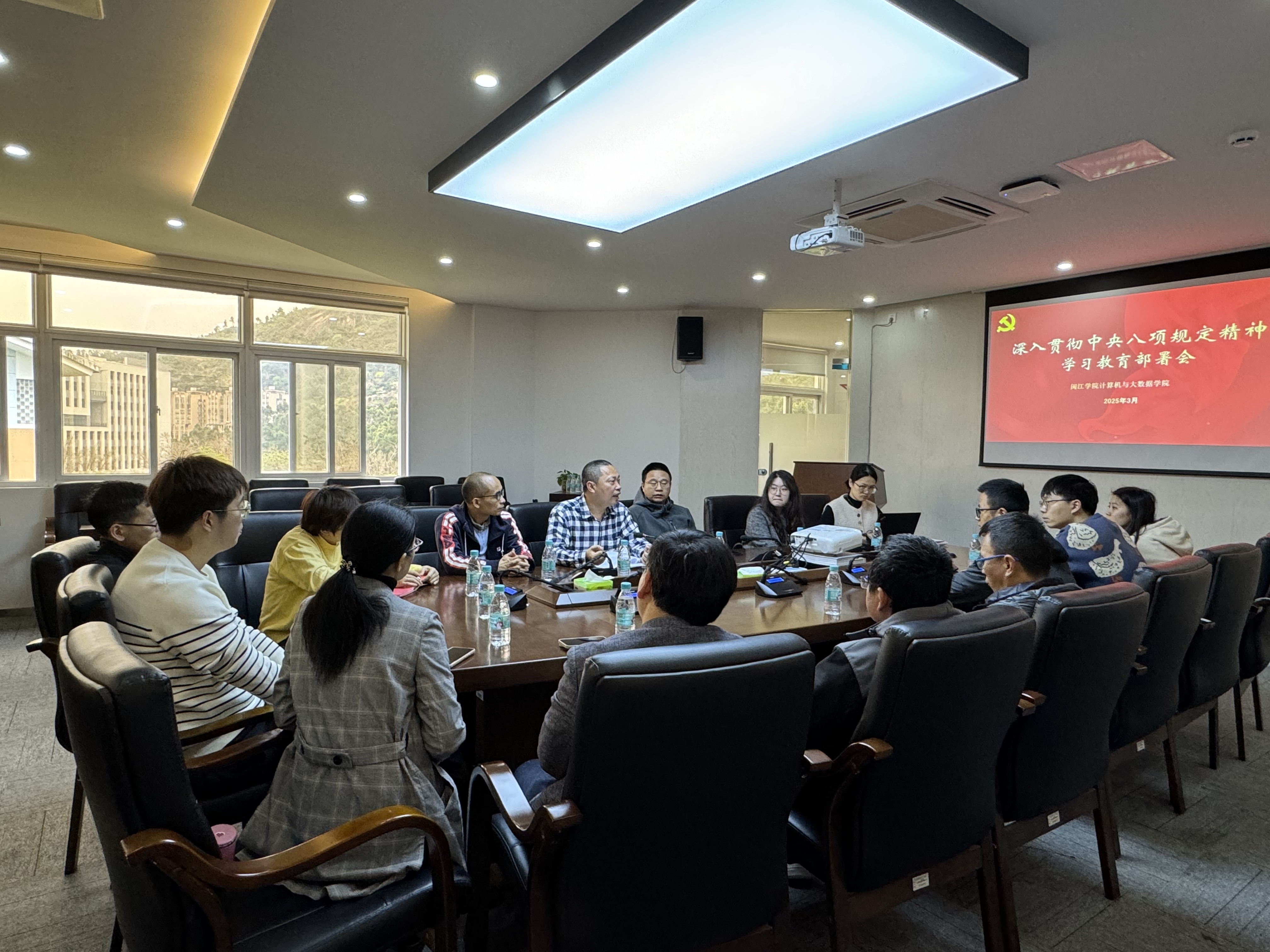 3月27日,计算机学院在工科楼A510会议室召开深入贯彻中央八项规定精神学习教育部署会,院党委委员、各党支部书记参加会议。会议由学院党委书记林耿主持。