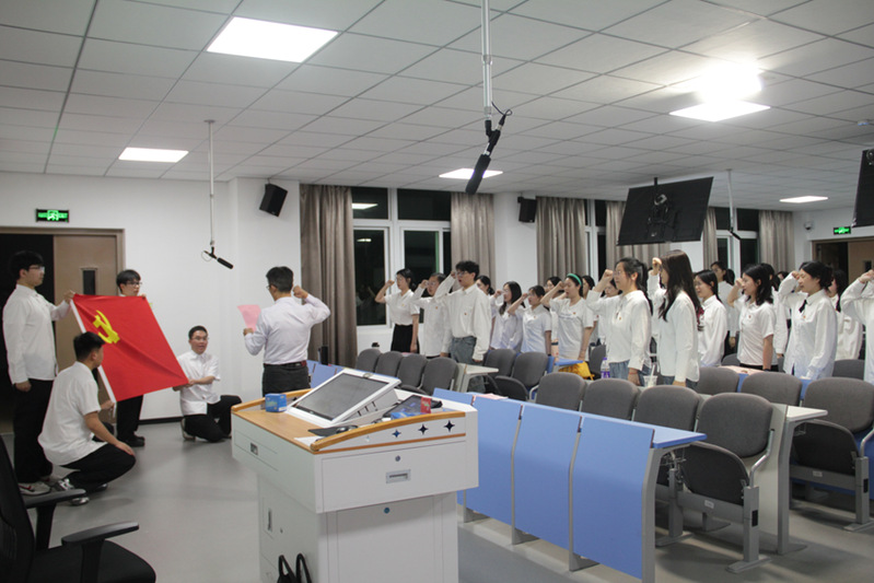 党课尾声,王文带领全体毕业生党员重温了入党誓词,毕业生党员代表共同宣读了《廉洁从业承诺书》。