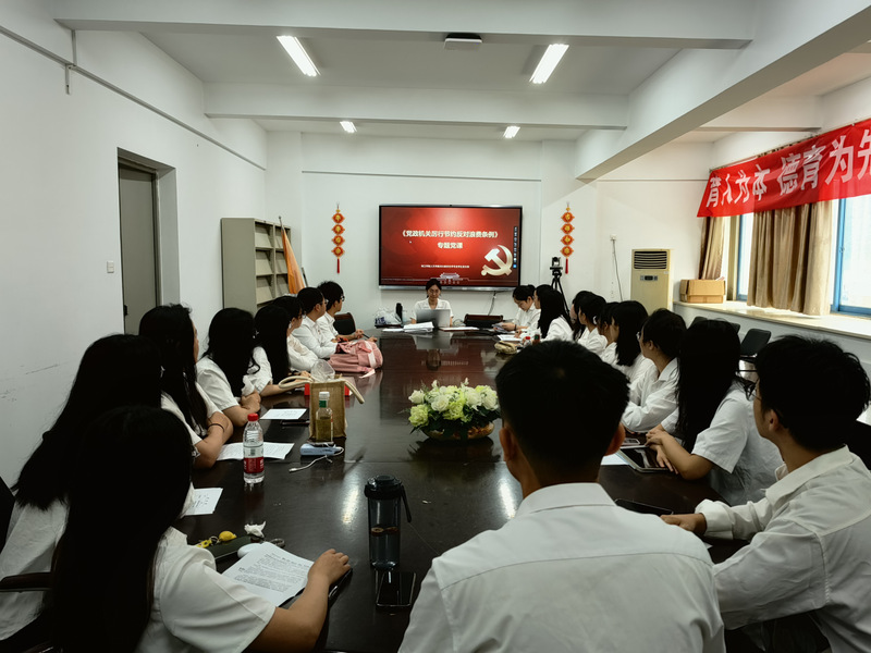 党支部书记以《党政机关厉行节约反对浪费条例》为主题,通过“三会一课”、党日活动、政治理论学习等形式,组织全体党员认真学习。教工第一党支部书记陈邑华表示,要对照反面典型举一反三,摒弃“没人管、管不住”的思想,杜绝“爱面子、讲排场”的心态,多在“一顿饭、一张纸、一支笔”上较真,在小事小节上守住清廉底线。学生第二党支部书记杨家豪表示,要克服“为学而学、学用脱节”的倾向,自觉将中央八项规定融入工作和生活方方面面,带头反对奢靡之风、摒弃盲目攀比,将勤俭节约体现在日常言行中,进一步增强厉行节约的思想自觉。学生第三党支部书记杨仙艳表示,要以实际行动坚定拥护“两个确立”、坚决做到“两个维护”,要深刻认识违反中央的严重危害,坚持纠“四风”和树新风并举,以优良党风带动学院向上向善。