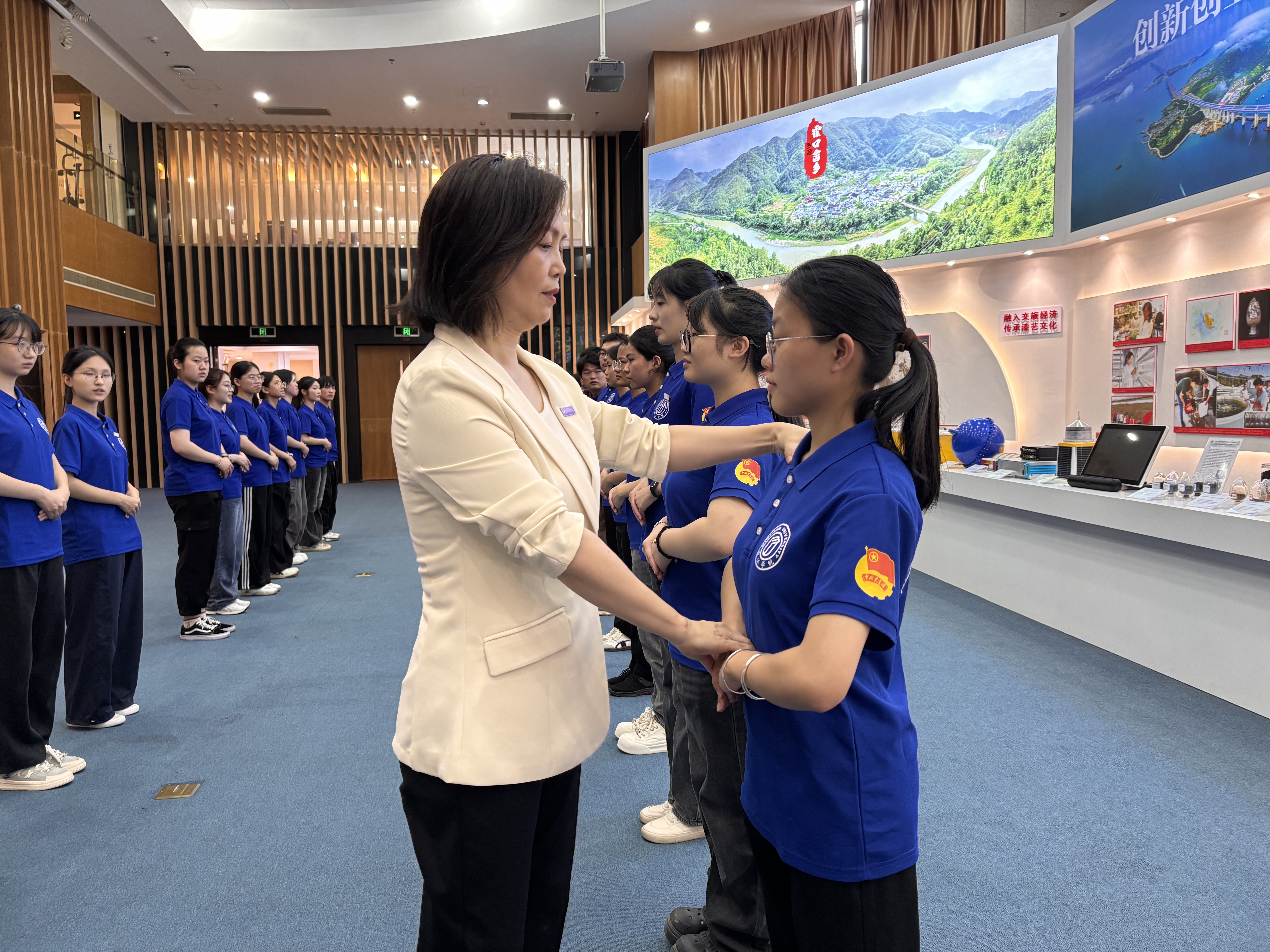 “秋实”导师团成员、经管学院朱玉华老师悉心传授学员展馆讲解实用技巧,并进行场景模拟实训,鼓励学员们在反复的练习中用“每一个手势、每一句讲解”的完美呈现塑造更好的自己,展示闽院学子“但求最优”的执着精神。