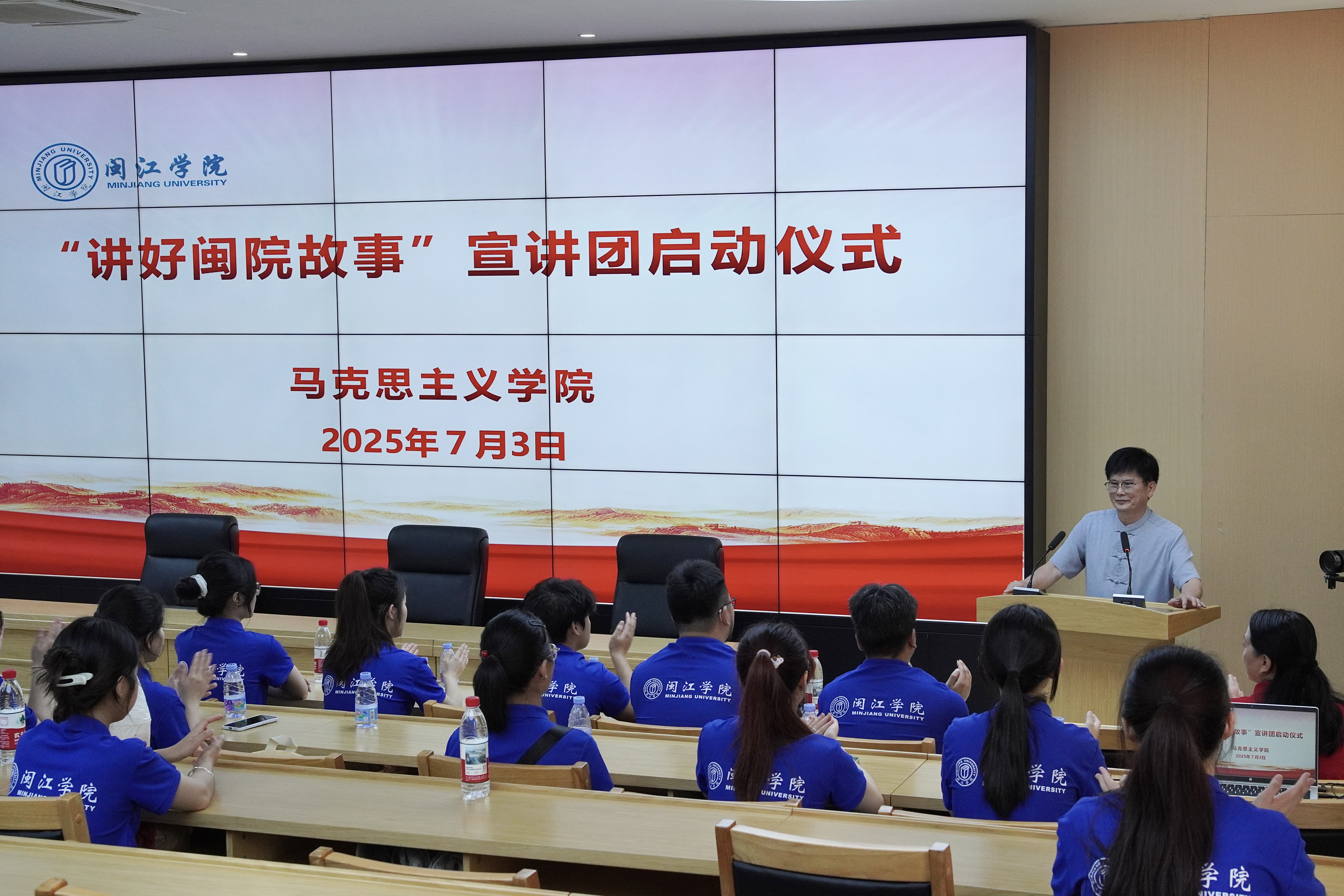 开营日,马克思主义学院在工业路校区举行“讲好闽院故事”宣讲团启动仪式。构建协同育人机制,组建由思政课教师组成的“春华”导师团,老教师和校友代表组成的“秋实”导师团,在校学生骨干组成的“毓英”宣讲团,通过“老中青”闽院人携手讲好闽院故事,传承办学精神,践行立德树人教育使命。