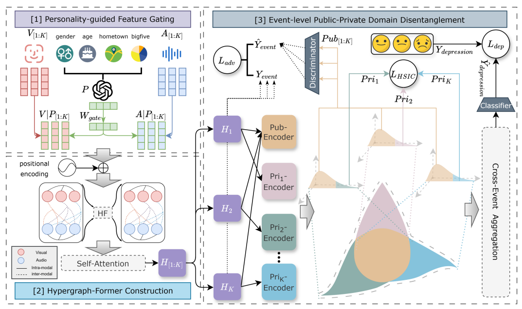 论文题目:Personality-guided Public-Private Domain Disentangled Hypergraph-Former Network for Multimodal Depression Detection