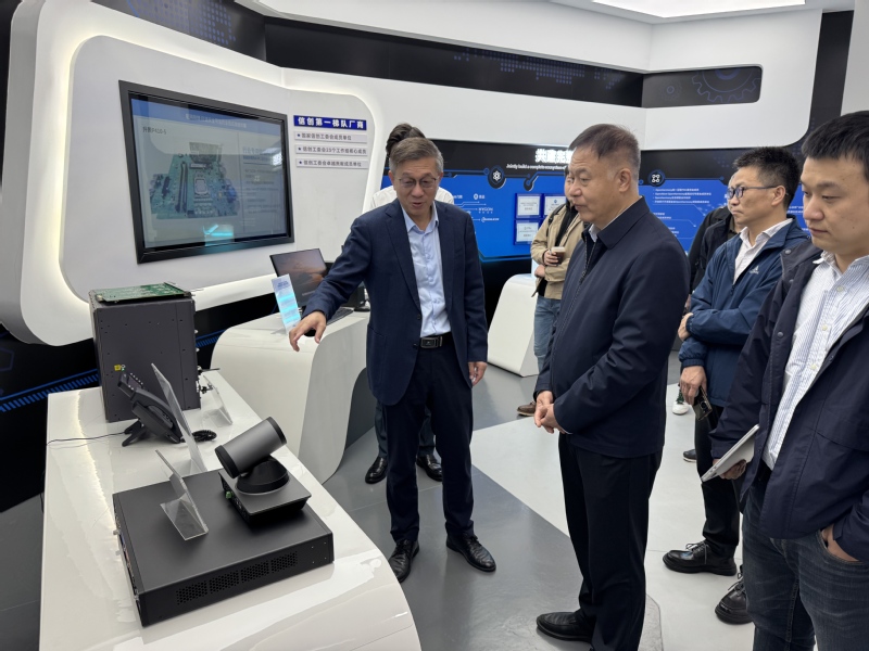 在星网锐捷科技园,舒继武一行参观了企业智慧展厅,详细了解星网锐捷在网络通讯、人工智能、物联网等领域的技术研发与产业应用成果。座谈会上,星网锐捷副总经理魏和文介绍了企业发展战略与技术创新布局,研究院副院长田中敏聚焦人工智能发展情况作专题分享。双方围绕具身智能、存算一体等前沿技术及校企合作路径进行了深入交流。
