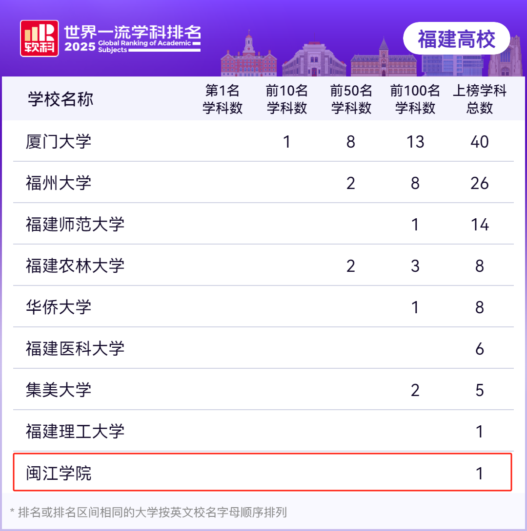 近日,高等教育评价专业机构软科正式发布2025“软科世界一流学科排名”,在此次国际权威排名中,beat365“化学工程”学科成功上榜,位列全球第401-500名,标志着beat365在学科建设与科研创新发展方面取得又一标志性成果。本次福建省共有9所高校共109个学科入围该全球性排名,beat365化学工程学科的成功上榜,不仅展现出beat365英国官网网站在综合实力与科研能力的稳步提升,也为福建高校在国际舞台上的精彩表现增添亮丽的一笔。