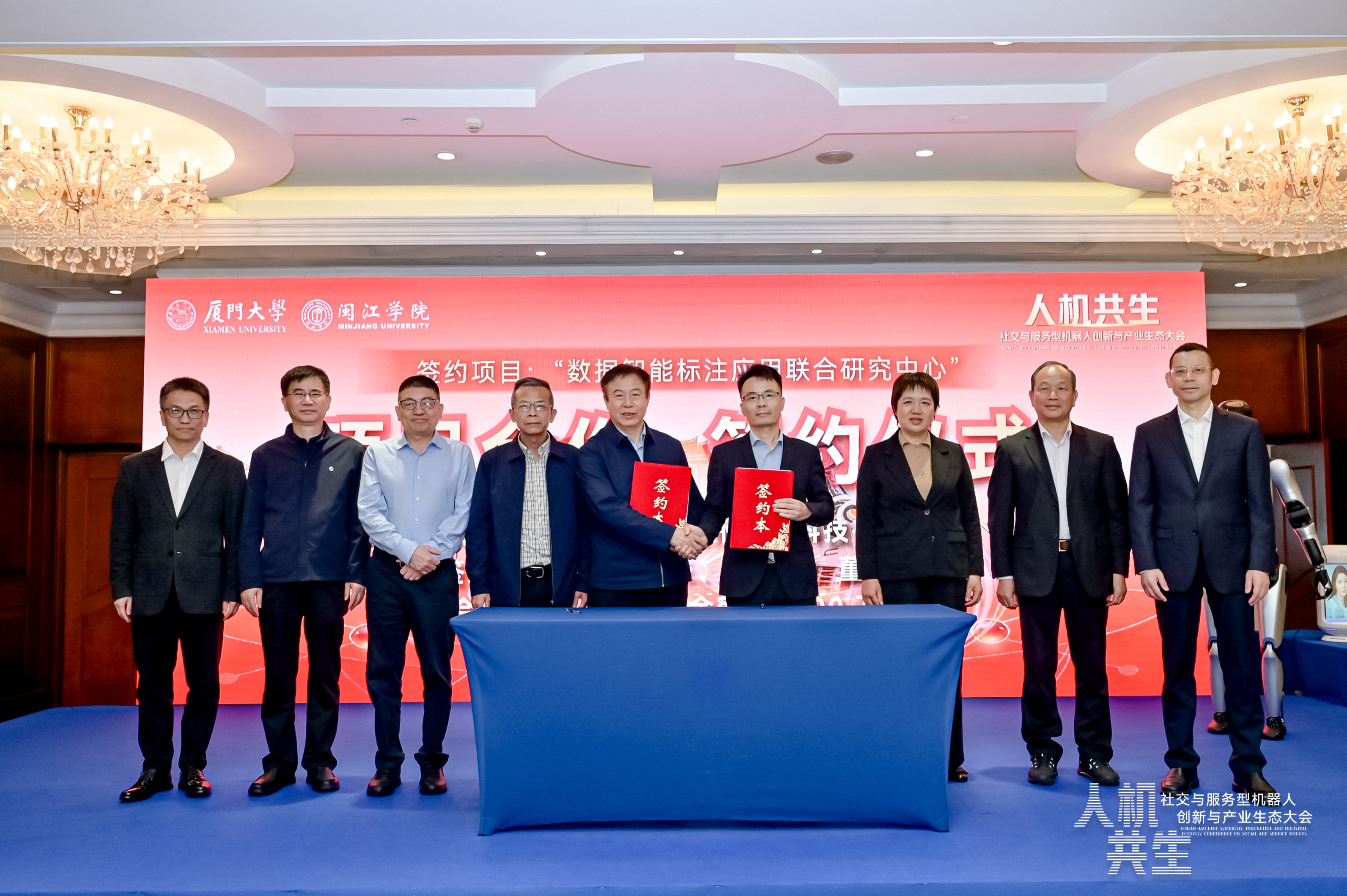 12月20日,beat365英国官网网站与厦门大学联合主办的2025年“人机共生”社交与服务型机器人创新与产业生态大会在厦门召开。大会期间,beat365英国官网网站与福州数源科技有限公司举行共建“数据智能标注应用联合研究中心”签约仪式,校长舒继武与福州数源科技有限公司董事长陈祥文代表双方签订共建协议。副校长张建安,科研处处长、研究中心负责人姚俊峰参加签约仪式。