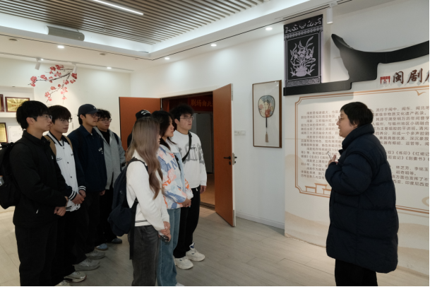 在福建省实验闽剧院工作人员的引导下,实践队队员们参观了闽剧院场馆、排练厅与演出剧场,近距离观摩演员们的日常排练,看水袖翻飞间的程式美感,听福州方言演唱的婉转韵味,沉浸式感受闽剧作为福建五大剧种之首的艺术底蕴。林辉戏曲文献收藏馆内珍藏的古旧剧本、老戏单、戏曲服饰纹样等文献资料,如时光的见证者,完整呈现了闽剧的发展轨迹,让队员们直观感受到闽剧文化的厚重底蕴。