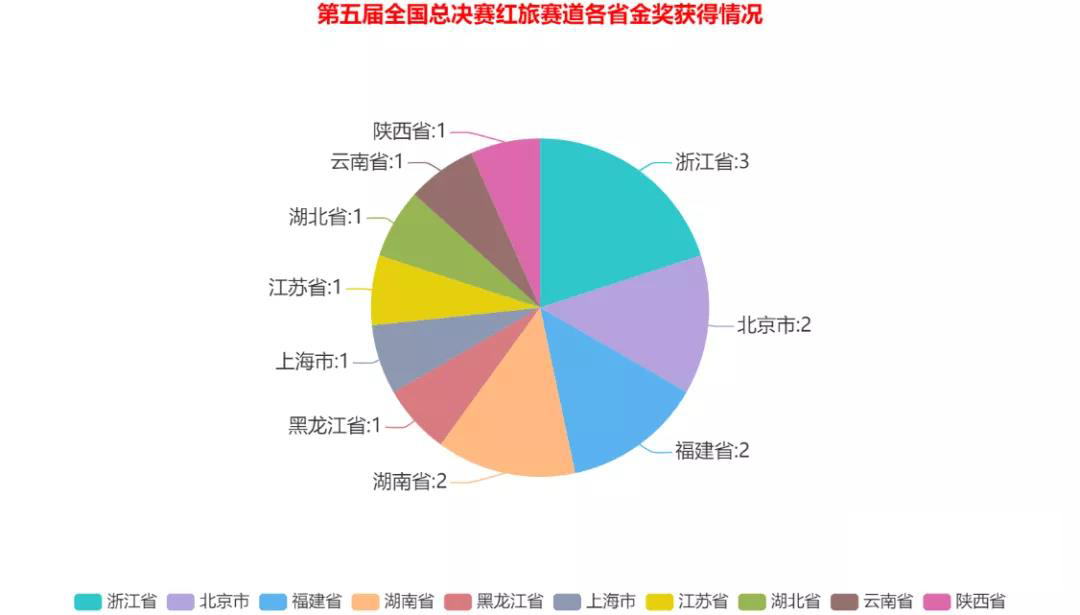 图3.第五届全国总决赛红旅赛道各省金奖获得情况