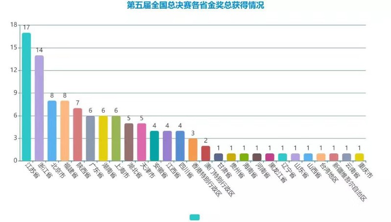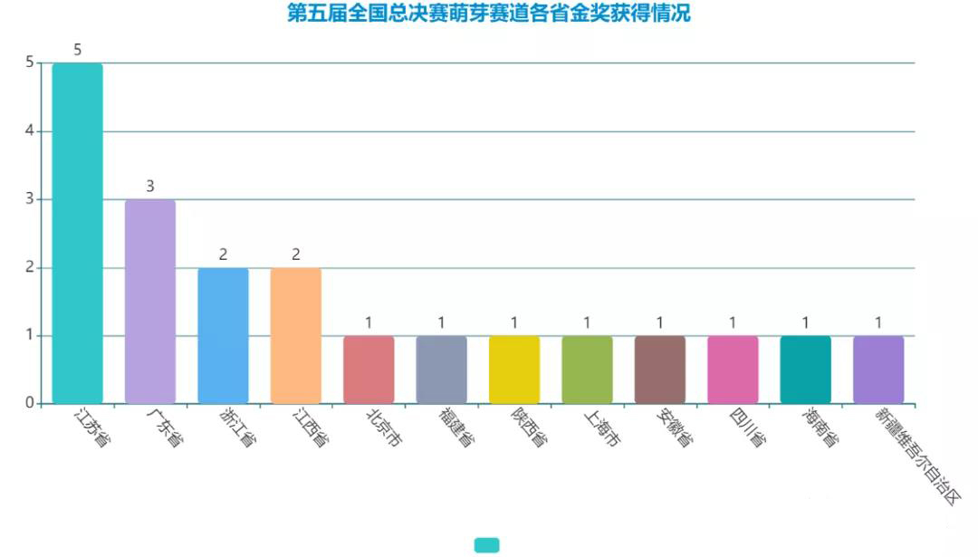 图5.第五届全国总决赛萌芽赛道各省金奖获得情况