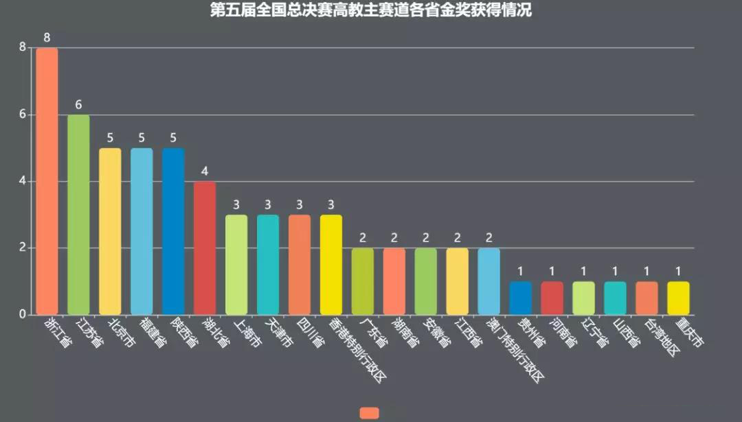 图2.第五届全国总决赛高教主赛道各省金奖获得情况