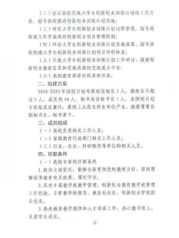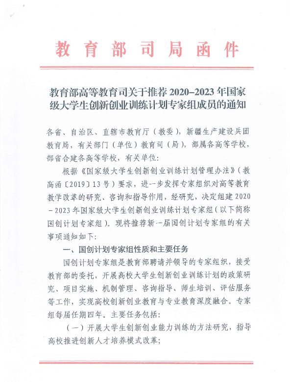 最新资讯 | 关于推荐2020-2023年国家级大学生创新创业训练计划专家组成员的通知