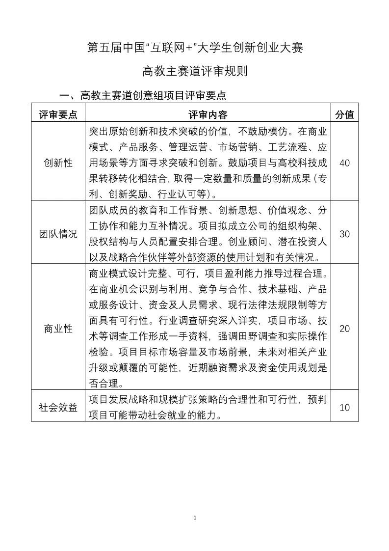 重磅!中国“互联网+”大学生创新创业大赛评审规则。