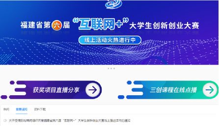 3月5日,福建省创新创业创造教育指导委员会发布《关于疫情防控期间组织开展福建省第六届“互联网+”大学生创新创业大赛线上推进活动的通知》。通知提出,省三创教指委将牵头组织开展获奖项目直播分享、大赛项目线上训练、三创课程在线点播、征集公益三创导师等大赛系列活动,助力院校疫情防控期间停课不停学、停课不停赛。