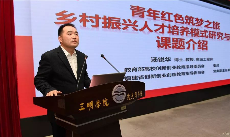 福建省创新创业创造教育指导委员会常务副主任汤锐华做青年红色筑梦之旅乡村振兴人才培养模式研究与实践课题介绍