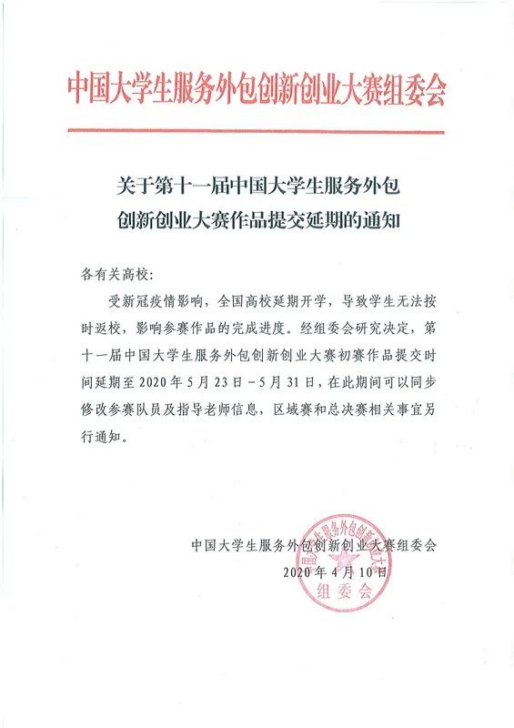 第十一届中国大学生服创大赛初赛作品提交延期通知