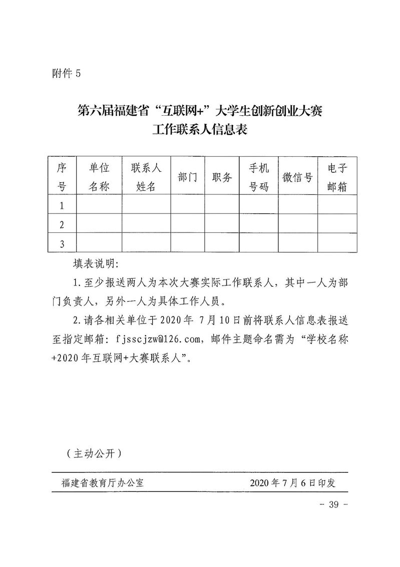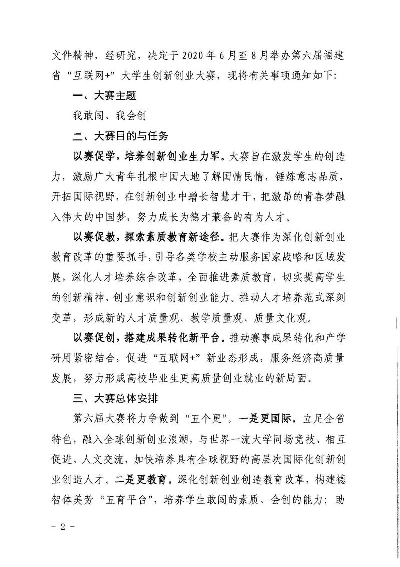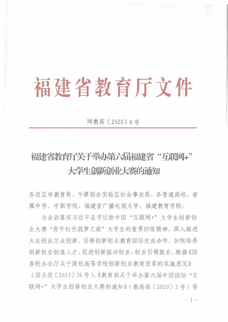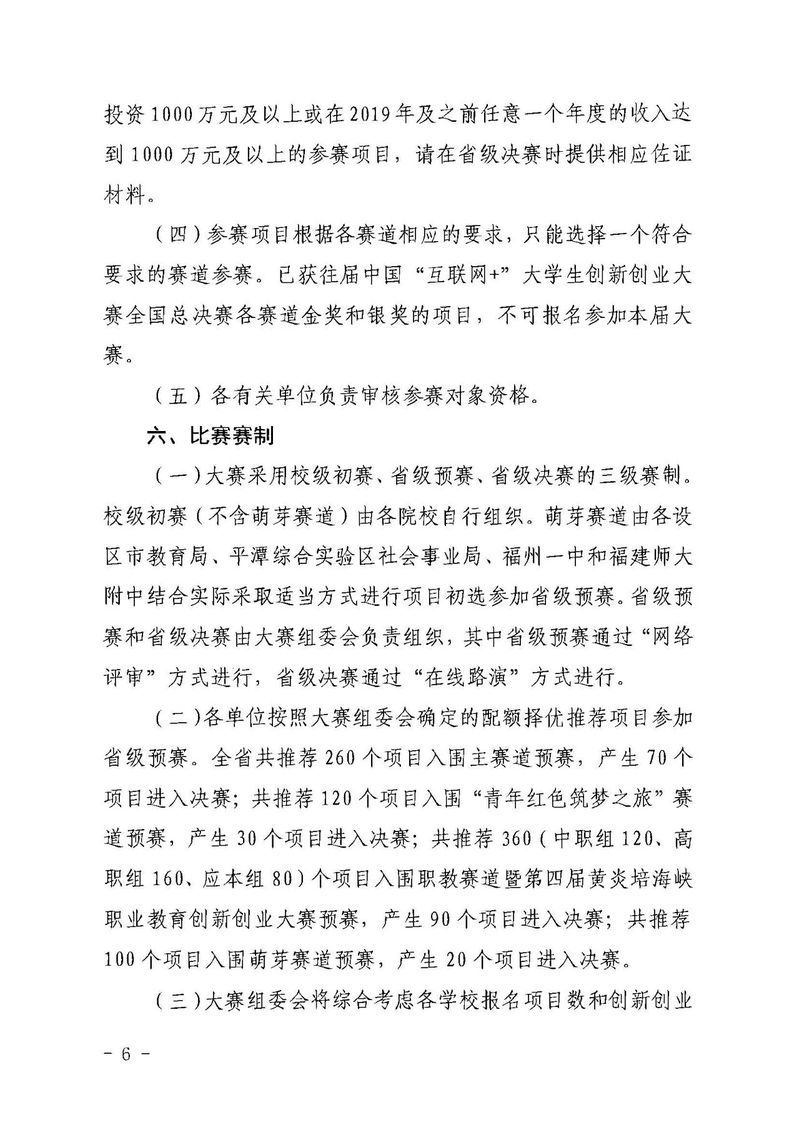 福建省教育厅关于举办第六届福建省“互联网+” 大学生创新创业大赛的通知