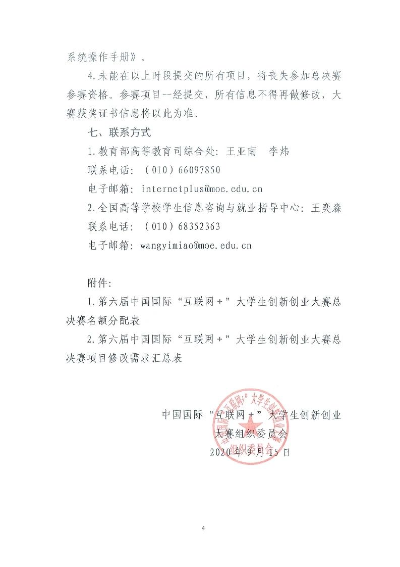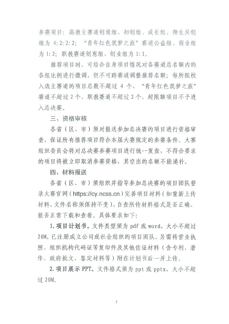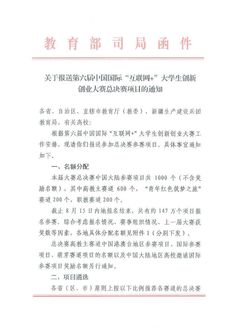 关于报送第六届中国国际“互联网+”大学生创新创业大赛总决赛项目的通知