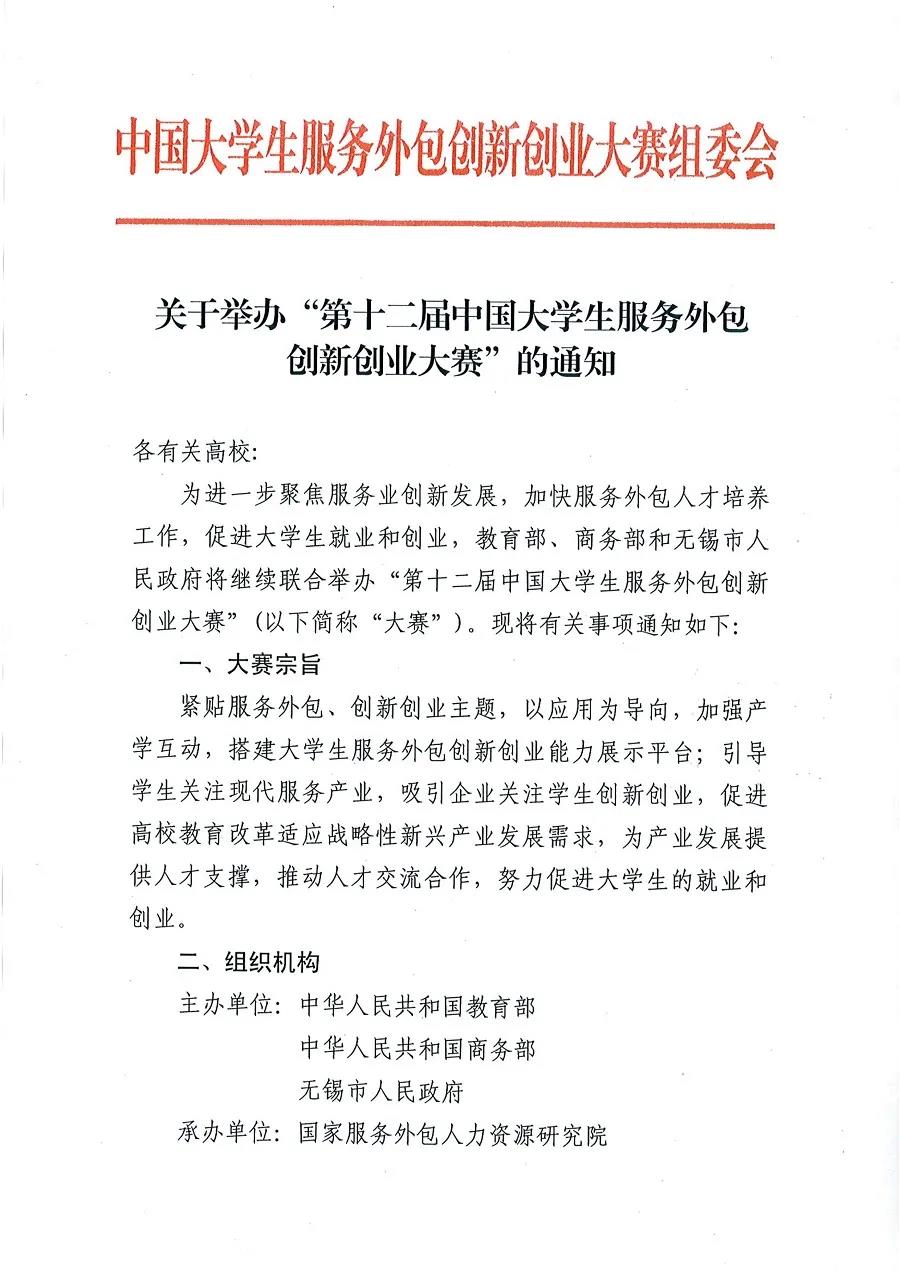 2021年第十二届中国大学生服务外包创新创业大赛的通知