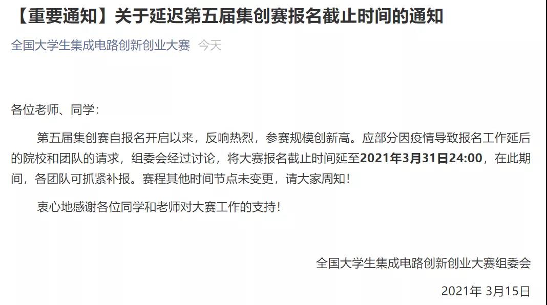 注意啦!这两个大学生创新创业大赛3月15日发布延期通知