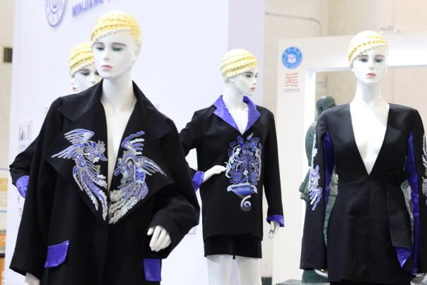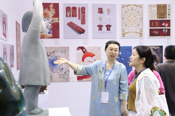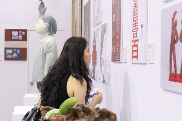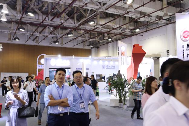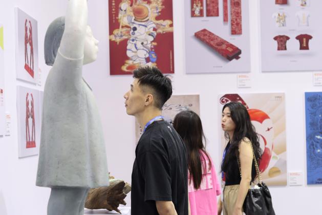 4天时间里,展位接待宾客近1100人次,吸引了众多商家、企业、学子等驻足欣赏,他们详细咨询作品创作理念和使用元素,对作品表现浓厚兴趣,一些爱好者仔细观察和触摸展品。