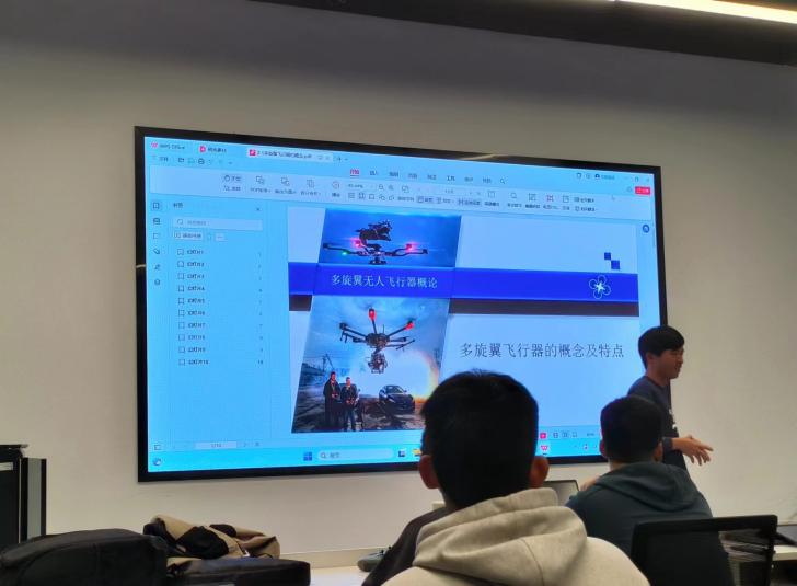 课程尾声,熊老师在室内进行了无人机的简易实操,夯实同学们无人机的基础知识、提升同学们无人机的实践能力。与此同时,也侧面表达了“校企合作育人才,优势互补共发展”的愿景。