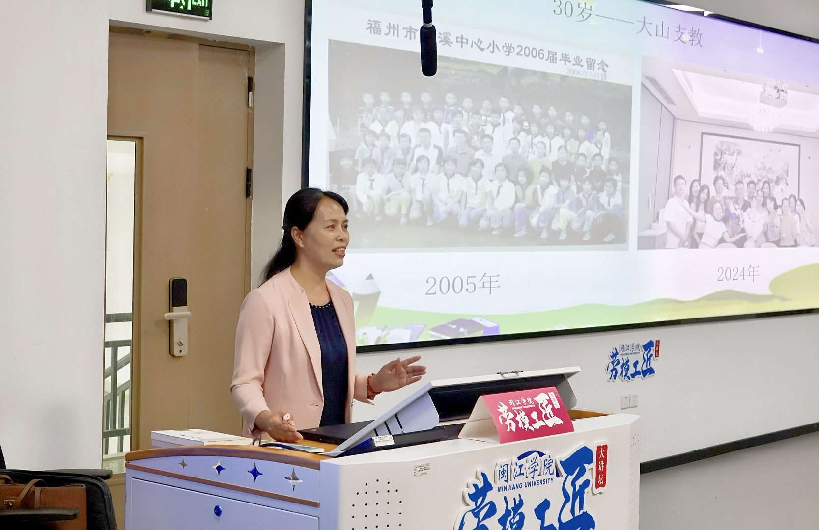 为进一步弘扬劳模工匠精神,引领学生传承情怀梦想,培育教育事业的接班人,2024年10月30日,三创学院组织开展“劳模工匠大讲坛”系列活动。本次活动邀请到福建省优秀教师、福州市劳动模范、福州市小学语文学科带头人刘仙芹同志担任主讲嘉宾,来自计算机学院、地海学院、材化学院、物电学院、海峡学院、新传学院的共计240名学生现场聆听了汇报,活动由三创学院王紫斌老师主持。