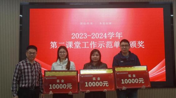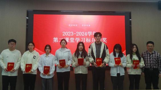 活动伊始,王紫斌老师宣读了《关于表彰2023-2024学年第二课堂先进集体和先进个人的决定》。随后,创新创业创造学院副院长林映平为各学院第二课堂学习标兵代表、第二课堂先进工作积极分子代表、先进工作者获奖者代表以及先进示范单位颁发了获奖证书和奖金。