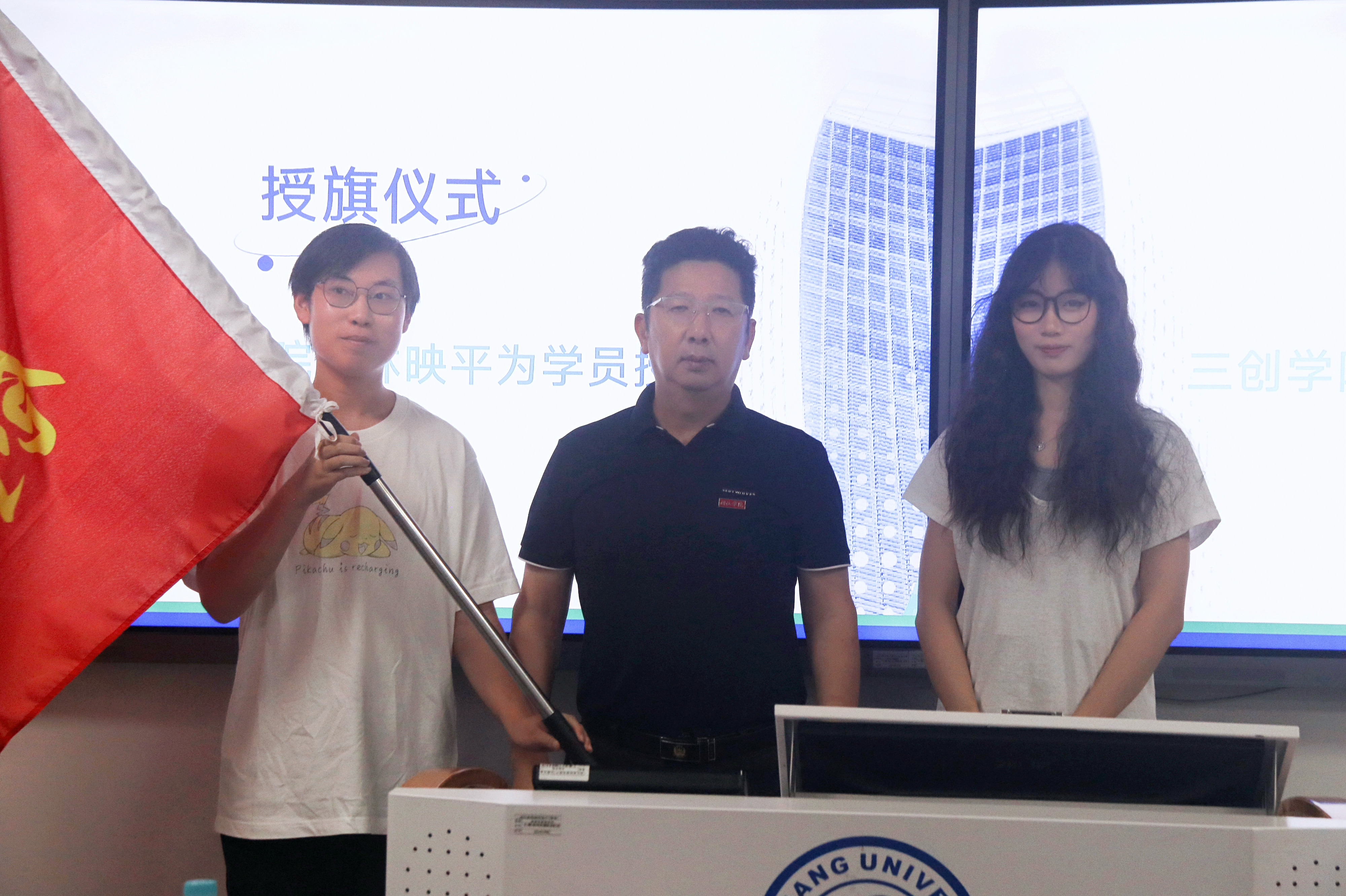 学员代表黄采伊在发言中表达了加入“创星班”的荣幸与决心,展现了全体学员昂扬的学习斗志和强烈的参与热情。随后,杨小高常务副院长向班级授予“创星班”班旗,标志着三创人才培养新征程的正式启航。