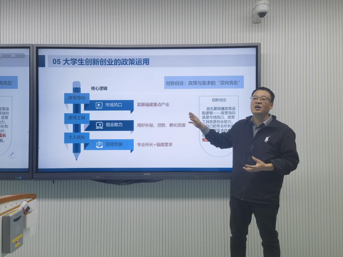 此次讲座搭建了宏观经济知识普及与双创实践指导的桥梁,既帮助同学们解读福建经济发展趋势与产业政策红利,也为创新创业实践提供清晰路径。未来,三创学院将聚焦福建新兴产业与未来产业布局,为同学们提供更多学习、实践内容,助力青年学子在福建高质量发展的征程中实现个人价值与区域发展的双向奔赴。