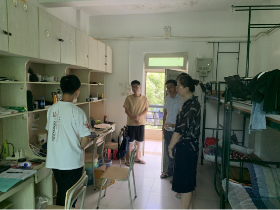 在走访教学楼和学生宿舍过程中,潘灯向同学们转达了学院领导和老师们对留校学生的关心,并与同学们进行深入交流,了解同学们在留校期间的学习、实习安排规划,询问学生的住宿、用餐、用水等生活状况,并对留校期间的各类安全事项及疫情防控作了提醒,嘱咐同学们假期要用心学习,争取更大进步。同时,提高自我防范意识,做好防暑降温,时刻保持手机畅通,经常与家人联系,有任何问题和困难要及时与辅导员联系。