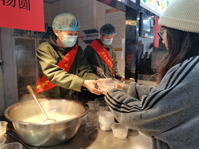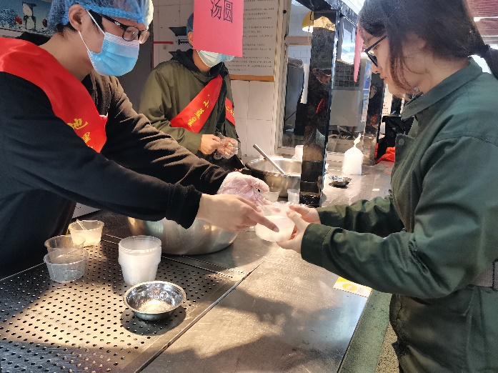 “天时人事日相催,冬至阳生春又来”,冬至是非常重要的节气,也是一个很重要的民俗节日。在活动现场,由学院志愿者们为同学们亲手打上一碗碗美味可口的汤圆,一杯杯热气腾腾的姜汤,驱走了冬日里的寒冷,温暖了在场每一个人的心。还有志愿者们的轻声叮嘱,细心提醒,辛勤工作,无一不感动着同学们。同学们细细品尝汤圆,将冬至的美好回忆深深印入心中,也将中国的传统文化和传统美德更好地传承下去。